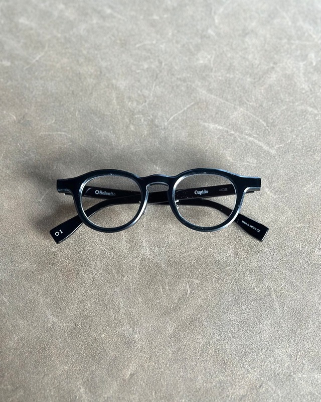 brand : Selenite model: Cupido color: 1 (Clear/Black) size: 44□22 厚みのあるセルロイド生地を贅沢に使い、さらには縁を全て削り取る テンプルに刻まれたアート 鼻パッドの"嘘と芸術" 細部にまでこだわりが詰まったこのSeleniteのセルフレームにはいつも感動を覚えます この"Cupido"は小さめサイズでシンプルな形をしています 高めに設計されたブリッジがフレンチヴィンテージ感を演出しており、垂れ目がちに見えるレンズ型が優しさもありつつクリエイティブな雰囲気もあります 個人的にはスカーフやストールを巻いたり、ハットを被ったり、 紳士淑女なスタイルに合わせてほしい一本です ※世界限定 200本 ※レンズ代込み(単焦点1.60外面非球面 or 度なしクリアレンズ or 度なしカラーレンズ) ※有料レンズオプションをご希望の方は、レンズメニューよりカートに追加して一緒にご購入ください(レンズメニューをご参照下さい) ※基本レンズor有料レンズどちらをご購入の場合も、ご希望のレンズと度数やカラーなどの詳細をメニューの”CONTACT"からご連絡ください (ご連絡がない場合は透明の度なしレンズをお入れしてお送りいたします)