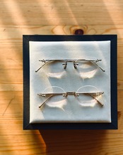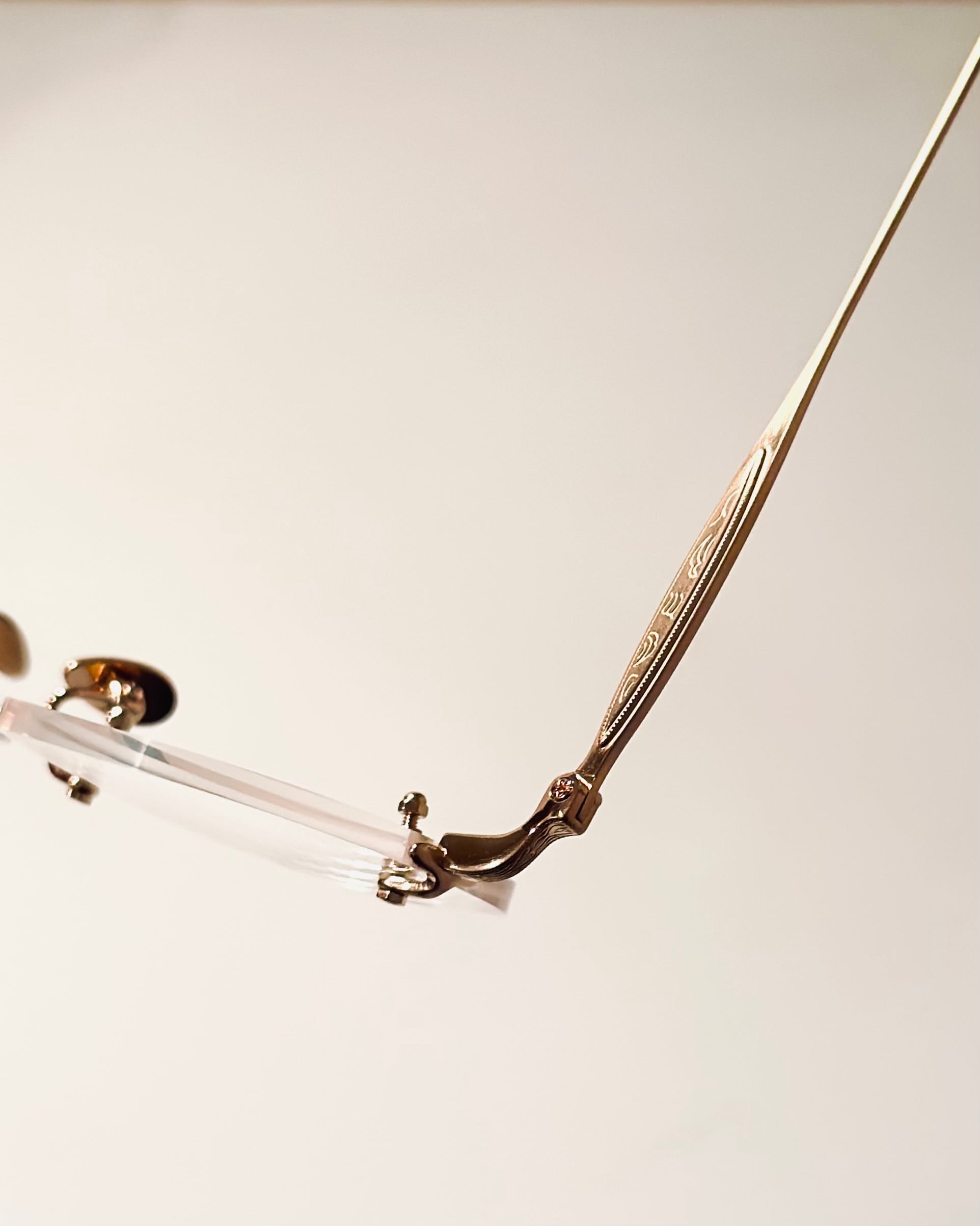 彫金を施したチタンテンプルにクラシカルなオーバルのレンズシェイプ