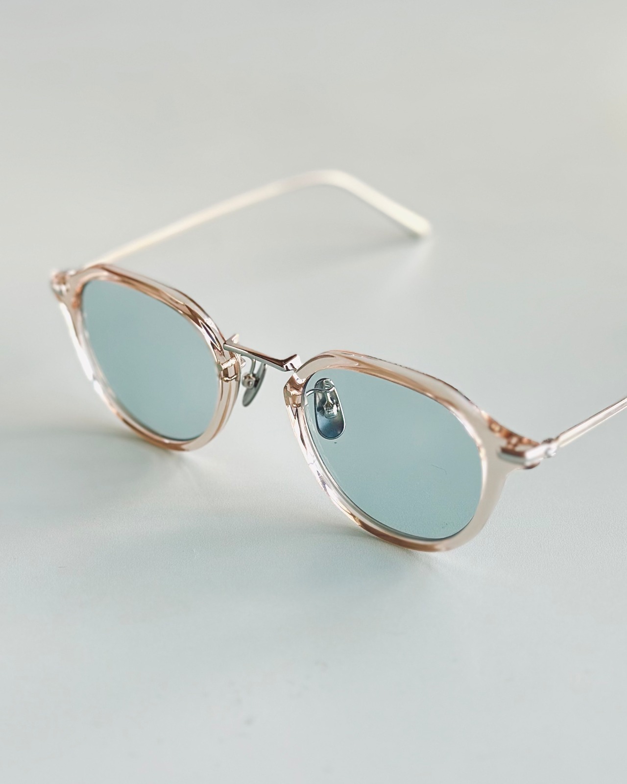 クラッシックなディティールを極力抑えた事に加え、角が立ちすぎず、丸みも強すぎないバランスの良いシルエットで様々なファッションに馴染むフレームです