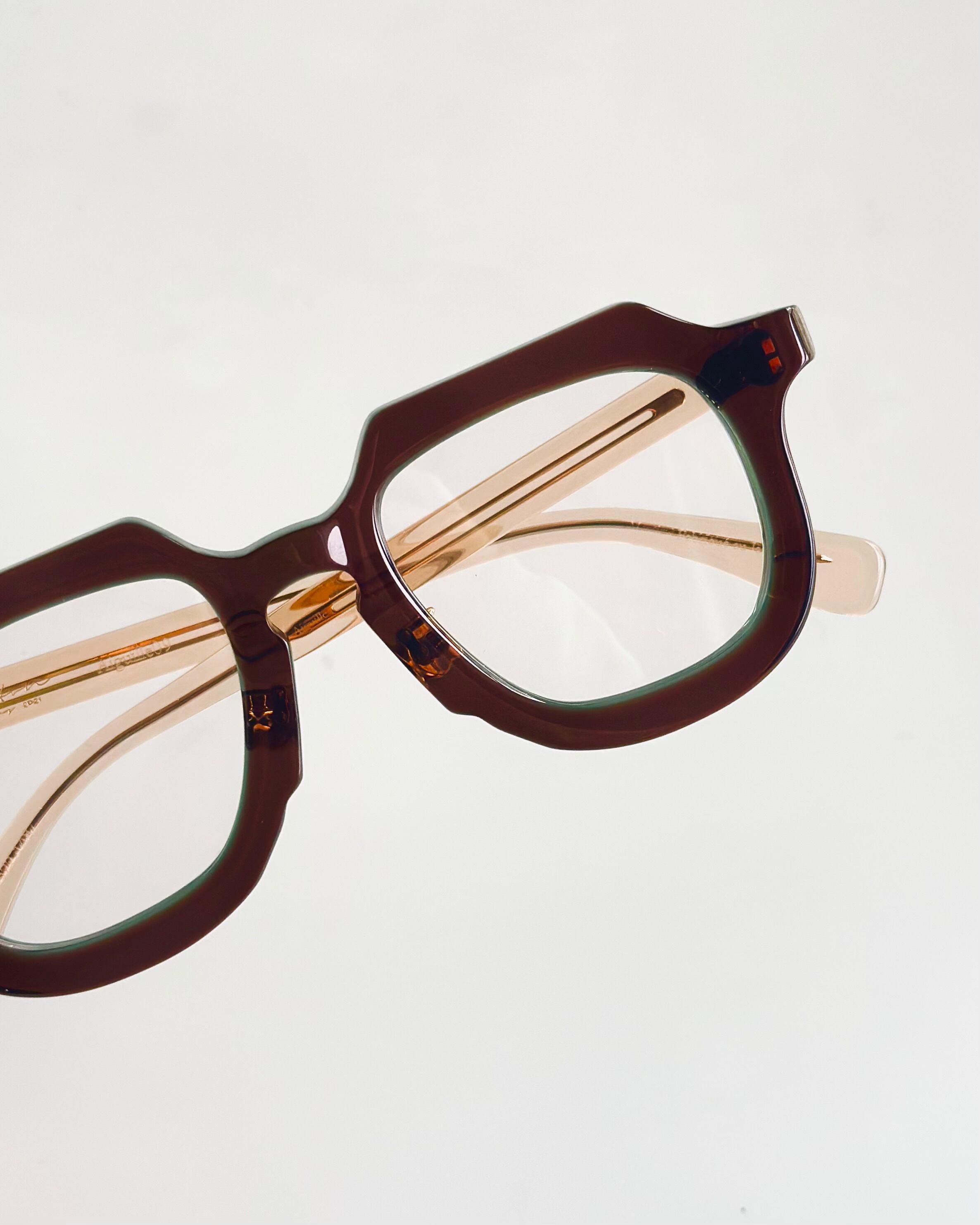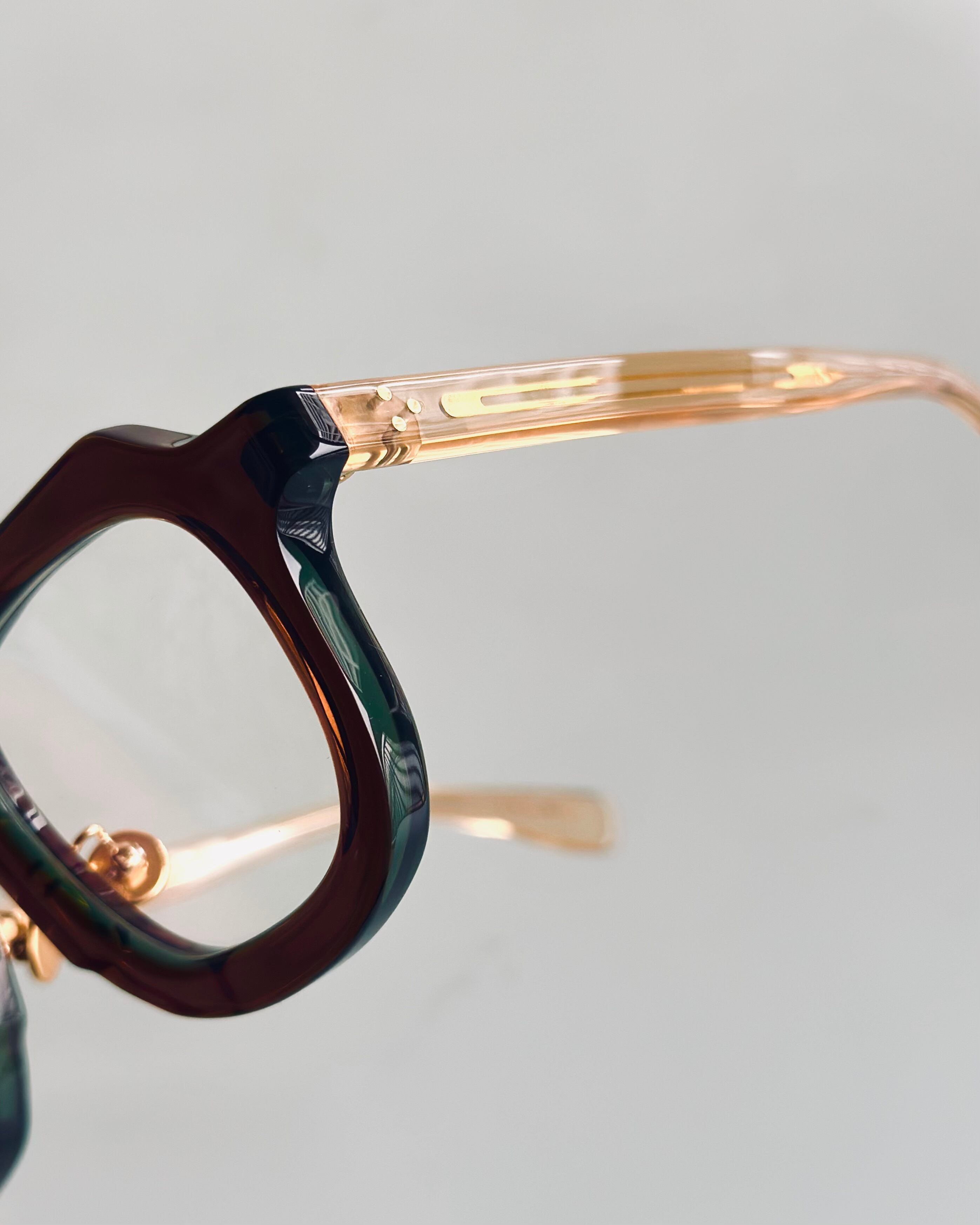 テンプルに差し込まれた"縫い針"や鼻パッドにあしらわれたボタンが特徴的なシリーズ”Aiguille"