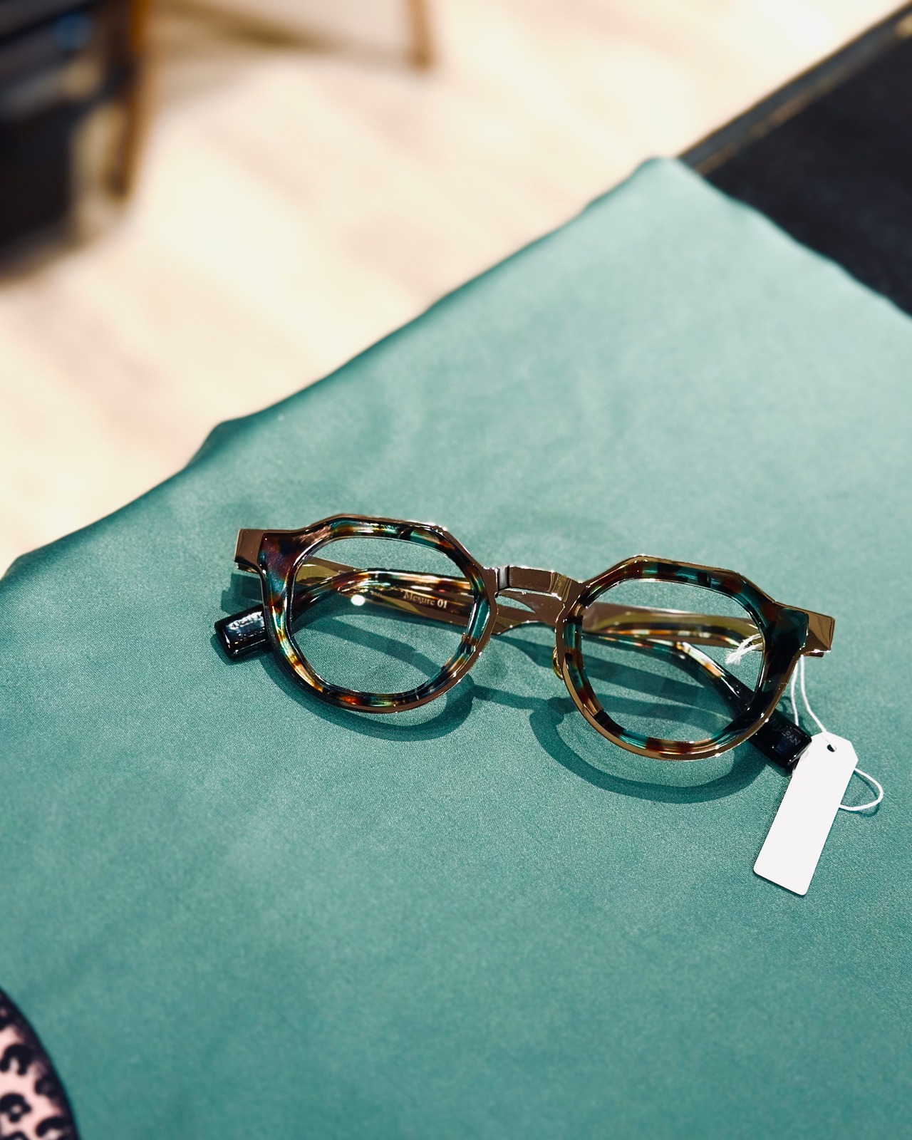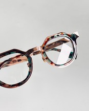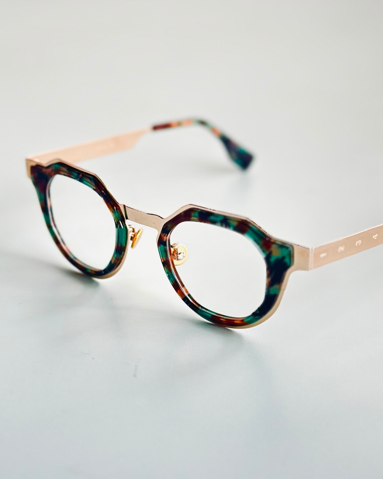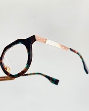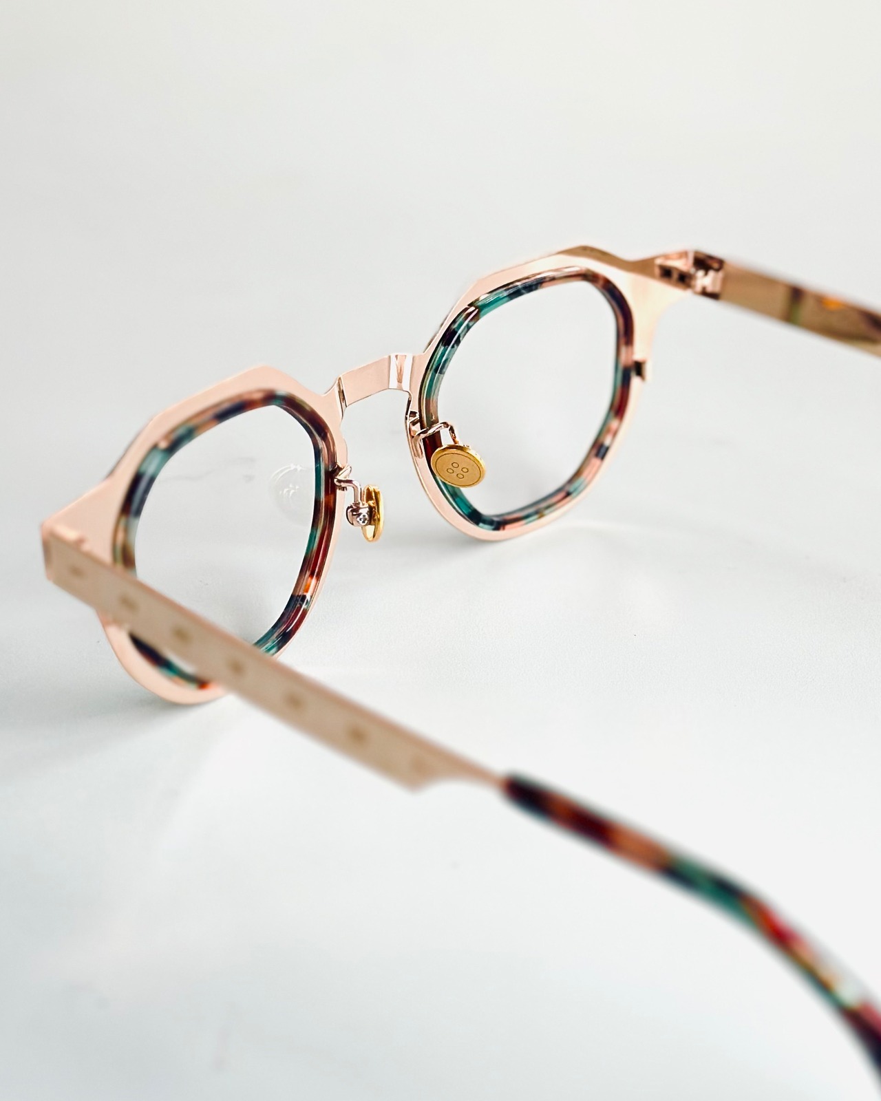 内側にはアセテートの内巻きがあり、金属とプラスティックの素材感の緩急が美しい