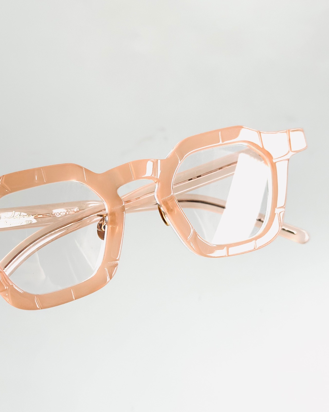 肉厚で小ぶりな多角形シェイプにクロコダイルの型押し、