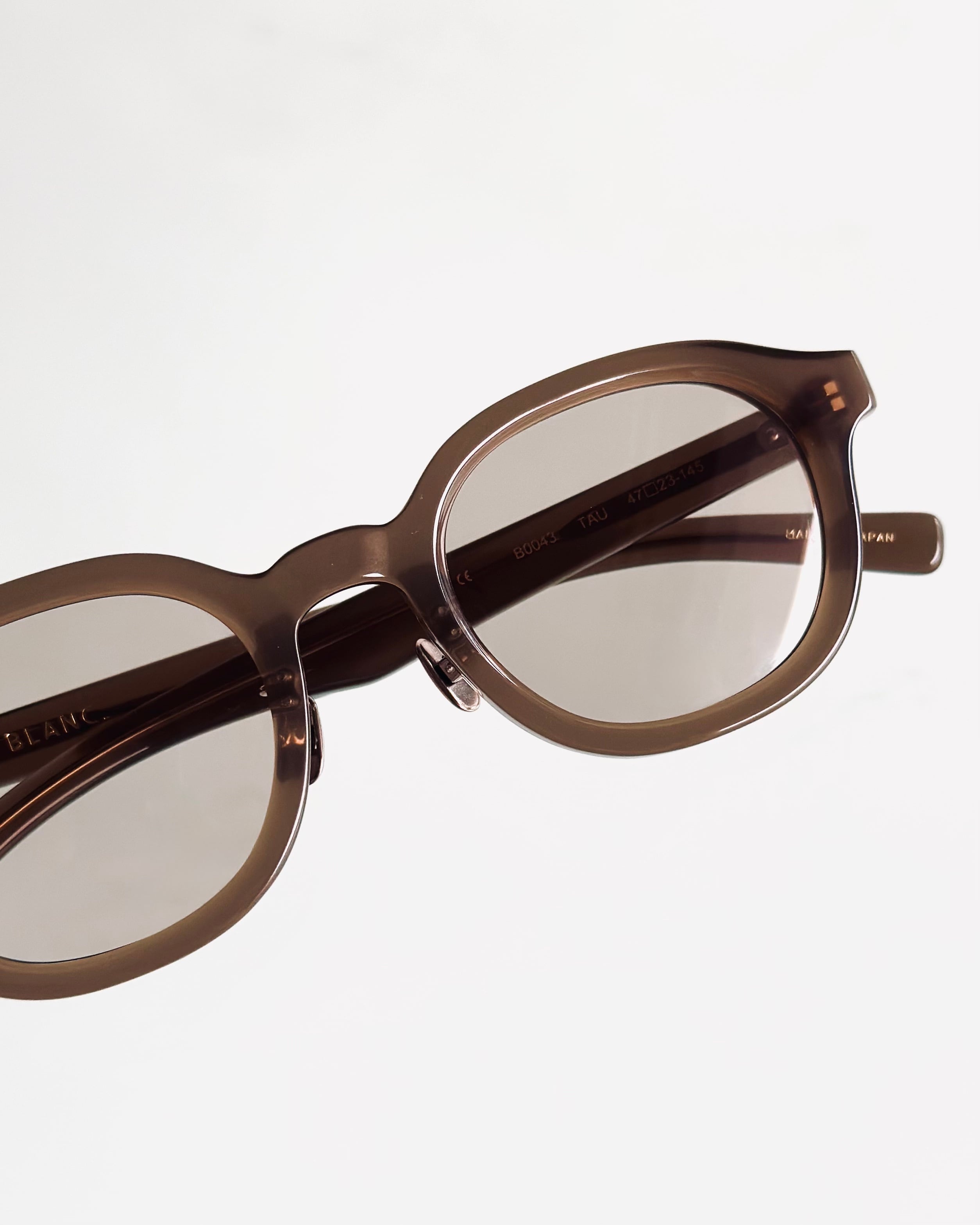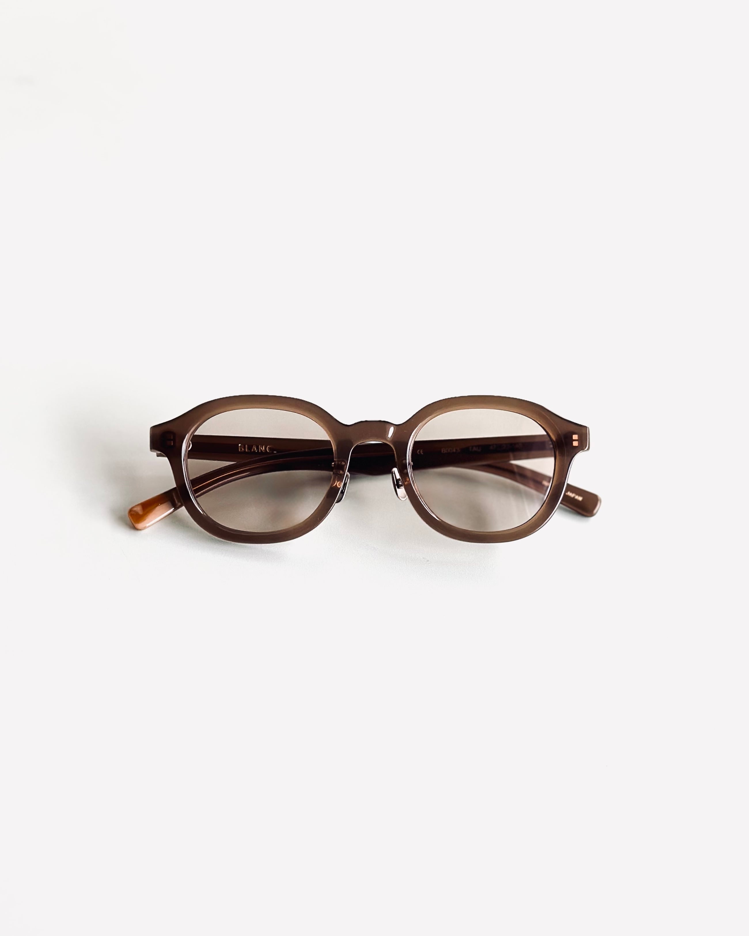 "B0043"はヘキサゴン型の角を極限まで丸く調整したレンズシェイプのオールアセテートフレーム