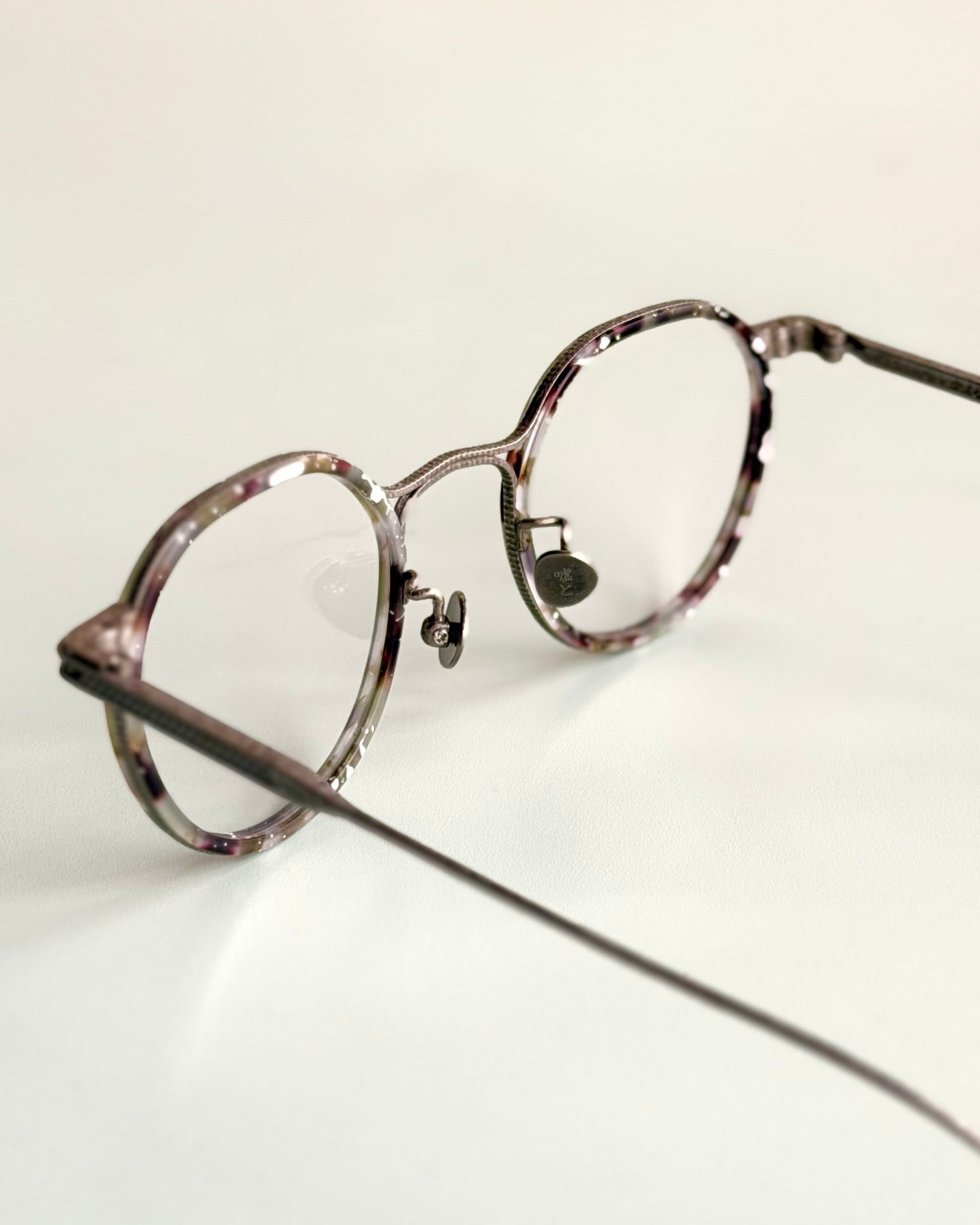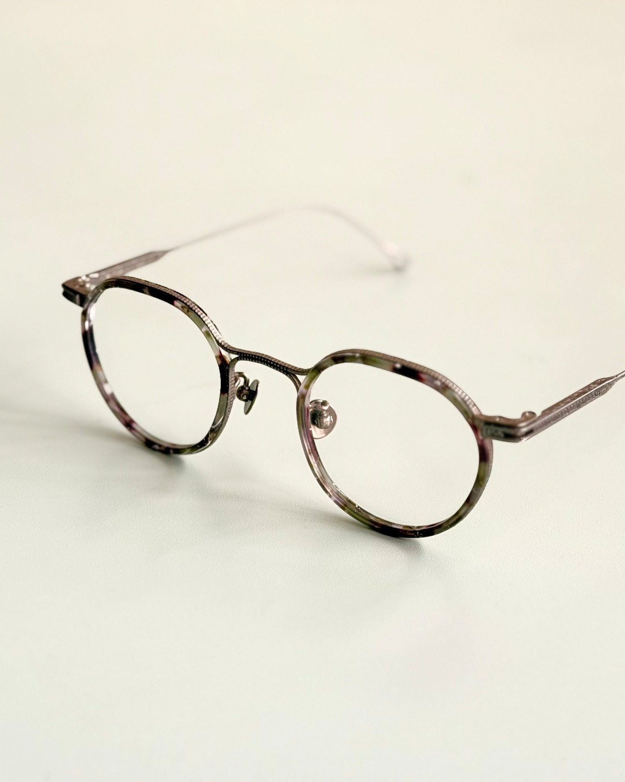 クラシカルなクラウンパントですが、内側のアセテートの枠が程よいカジュアル感のためちょうどいい押し引きのデザイン