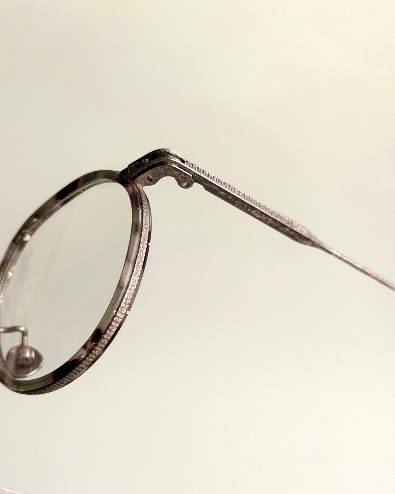 アセテートの内巻きには白ペンキのハンドペイント