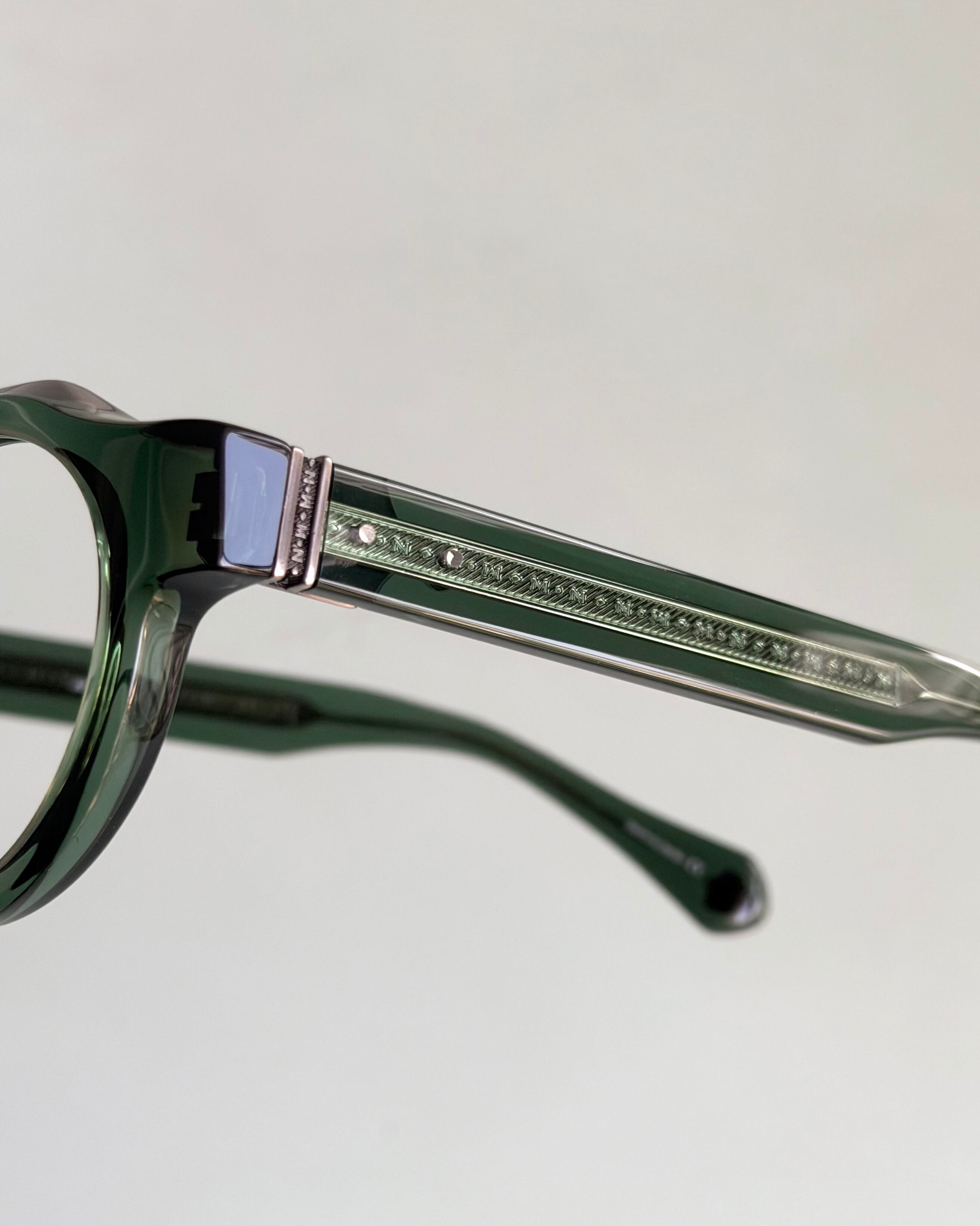 10mm厚のアセテートに”MATSUDA”の定番の彫金の芯を差し込み、
