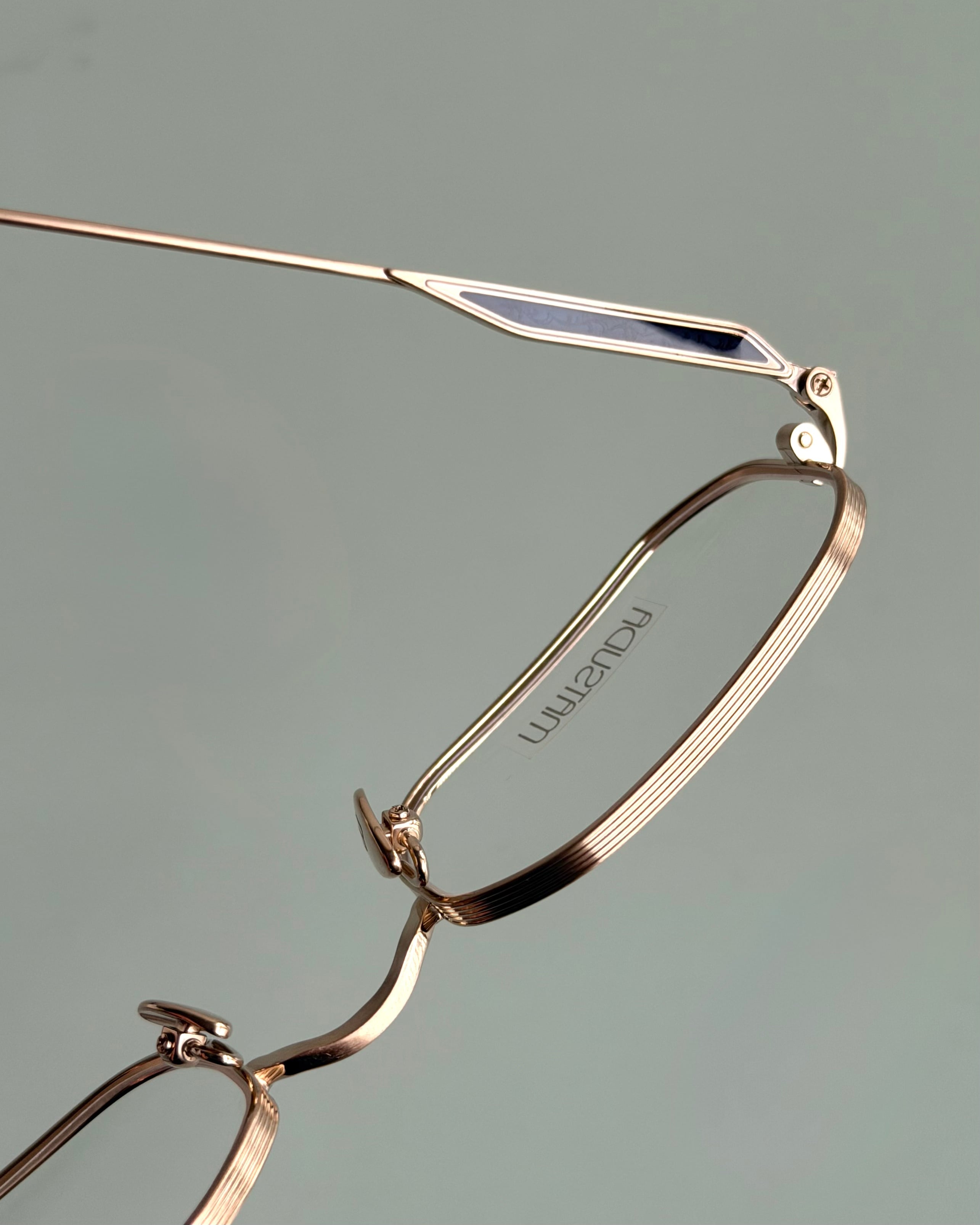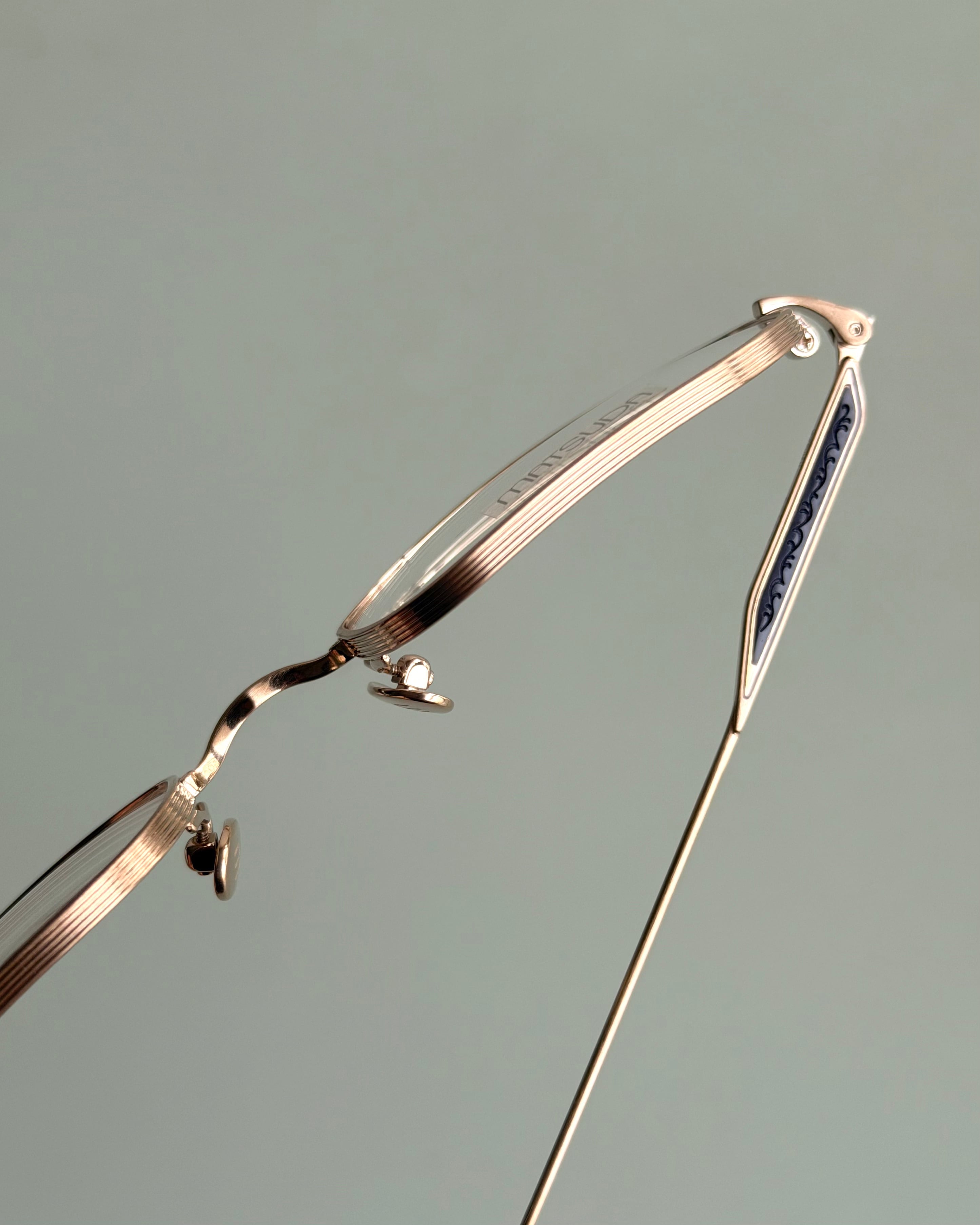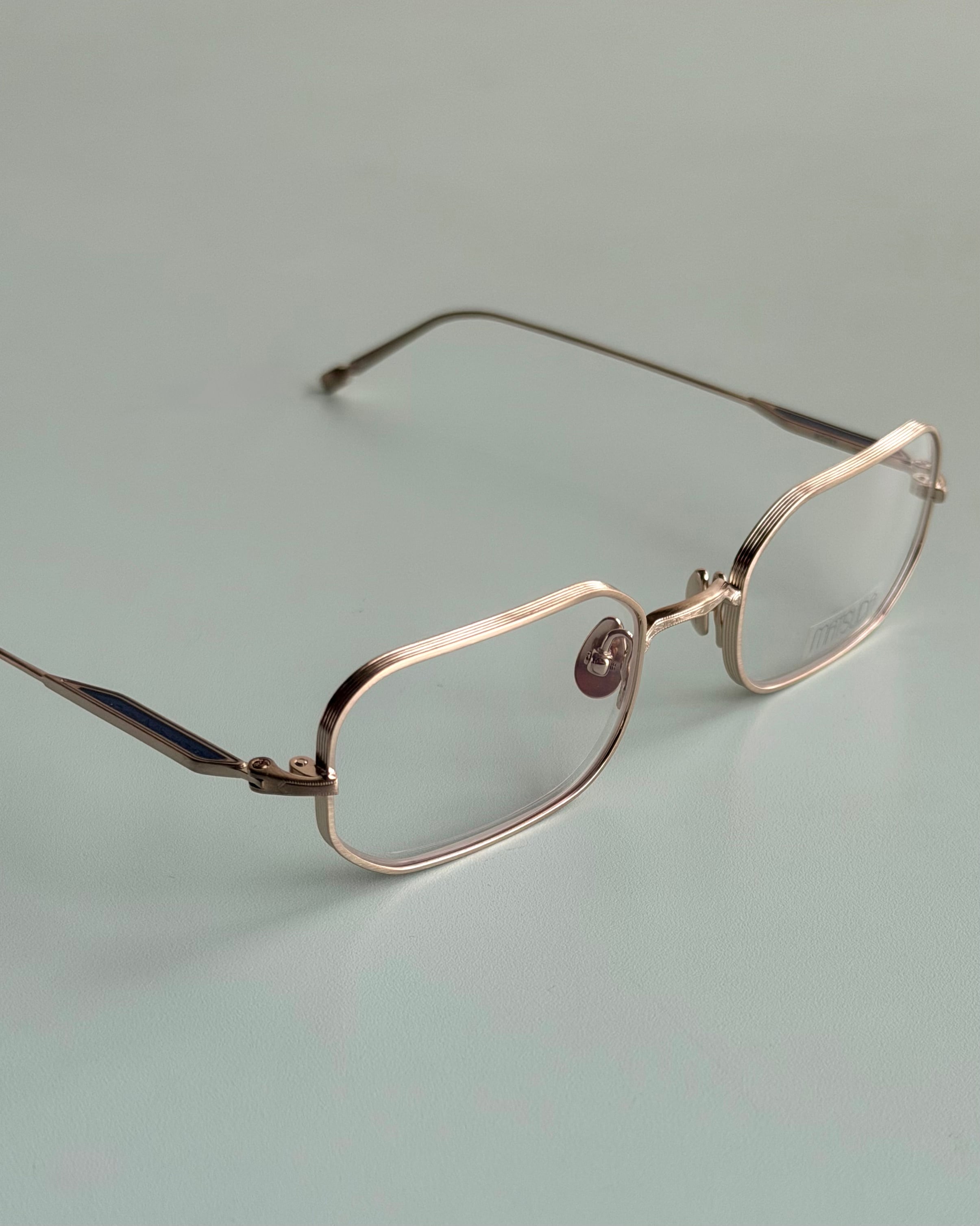 高品質なチタンを用いた軽やかな掛け心地に、精緻な彫金を施したテンプルとブリッジがさりげない奥行きを添える一本です
