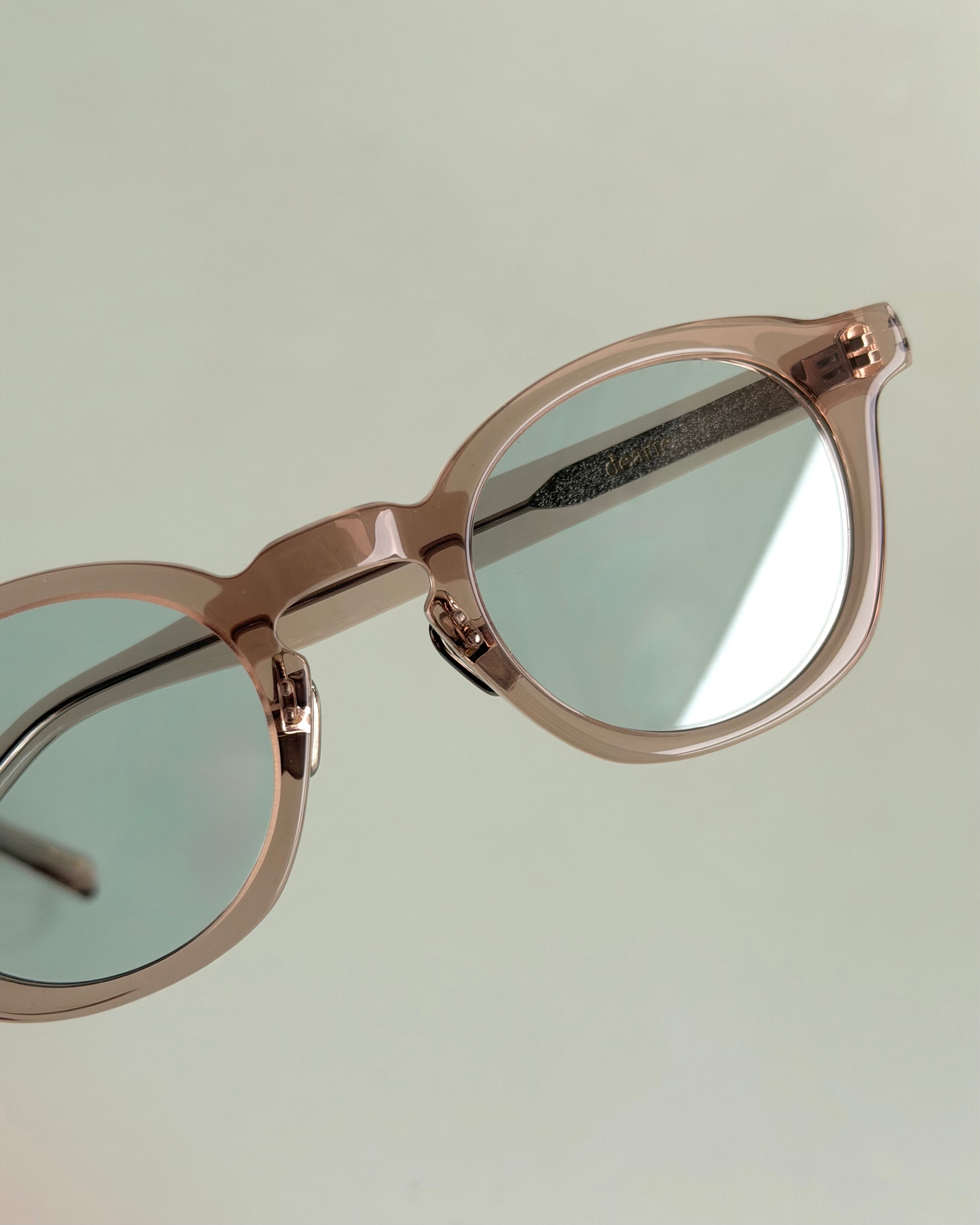 ヴィンテージフレームのディテールをベースにしながらも、現代のスタイルに自然と溶け込むバランスで設計された"dearie"